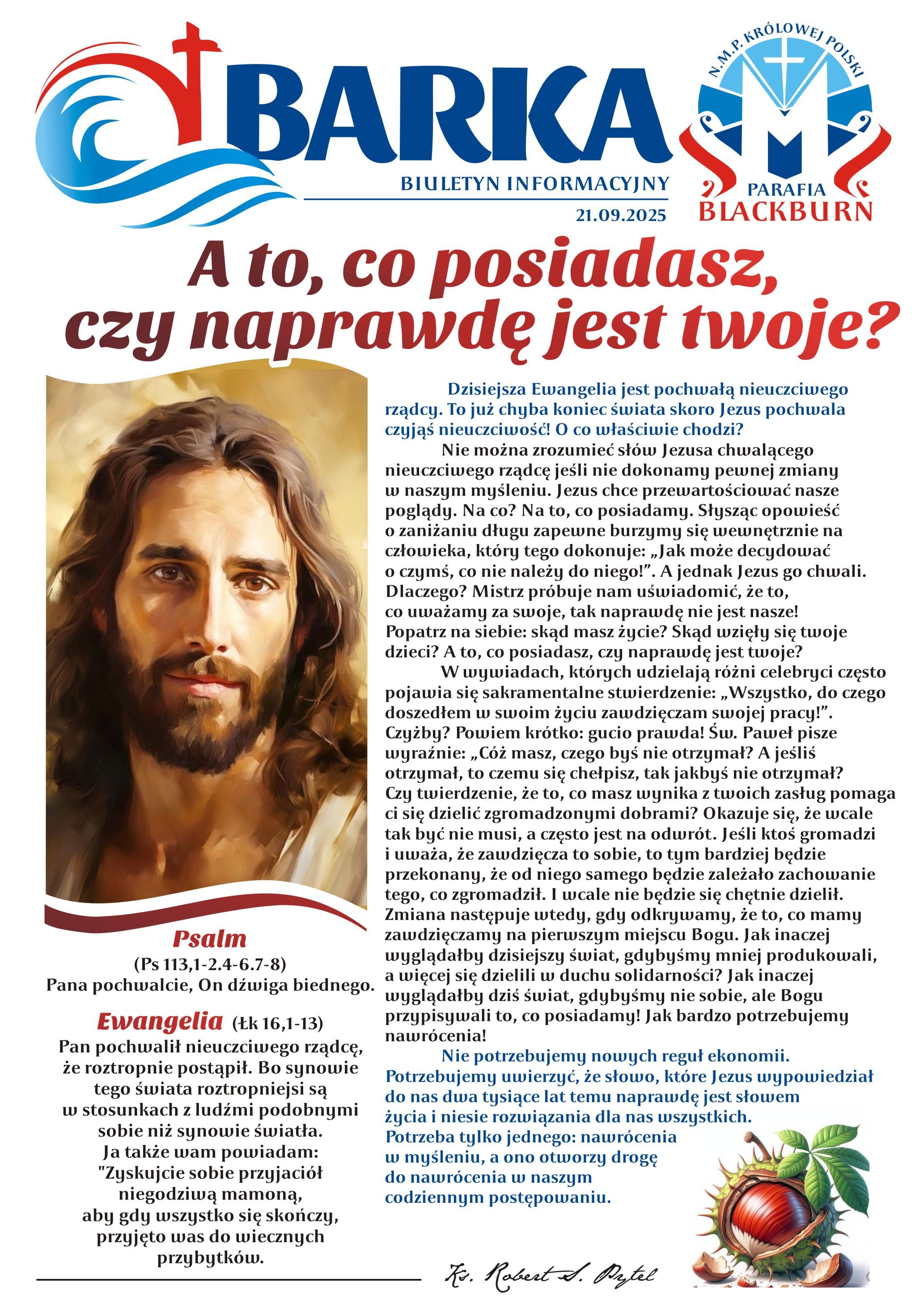 czwartek 19:00W intencji mamy Teresy o potrzebne łaski i zdrowie.