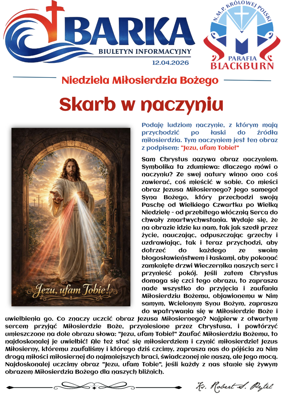 Uwierzyłeś, Tomaszu, bo Mnie ujrzałeś; błogosławieni, którzy nie widzieli, a uwierzyli.