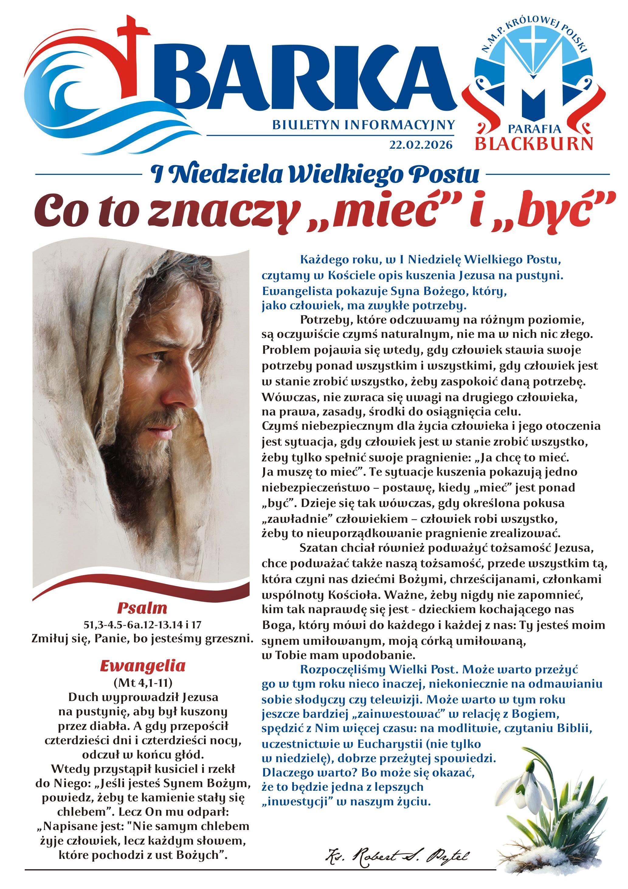 niedziela 19:00Proście, a będzie wam dane; szukajcie, a znajdziecie; kołaczcie, a otworzą wam. Mt 7:7