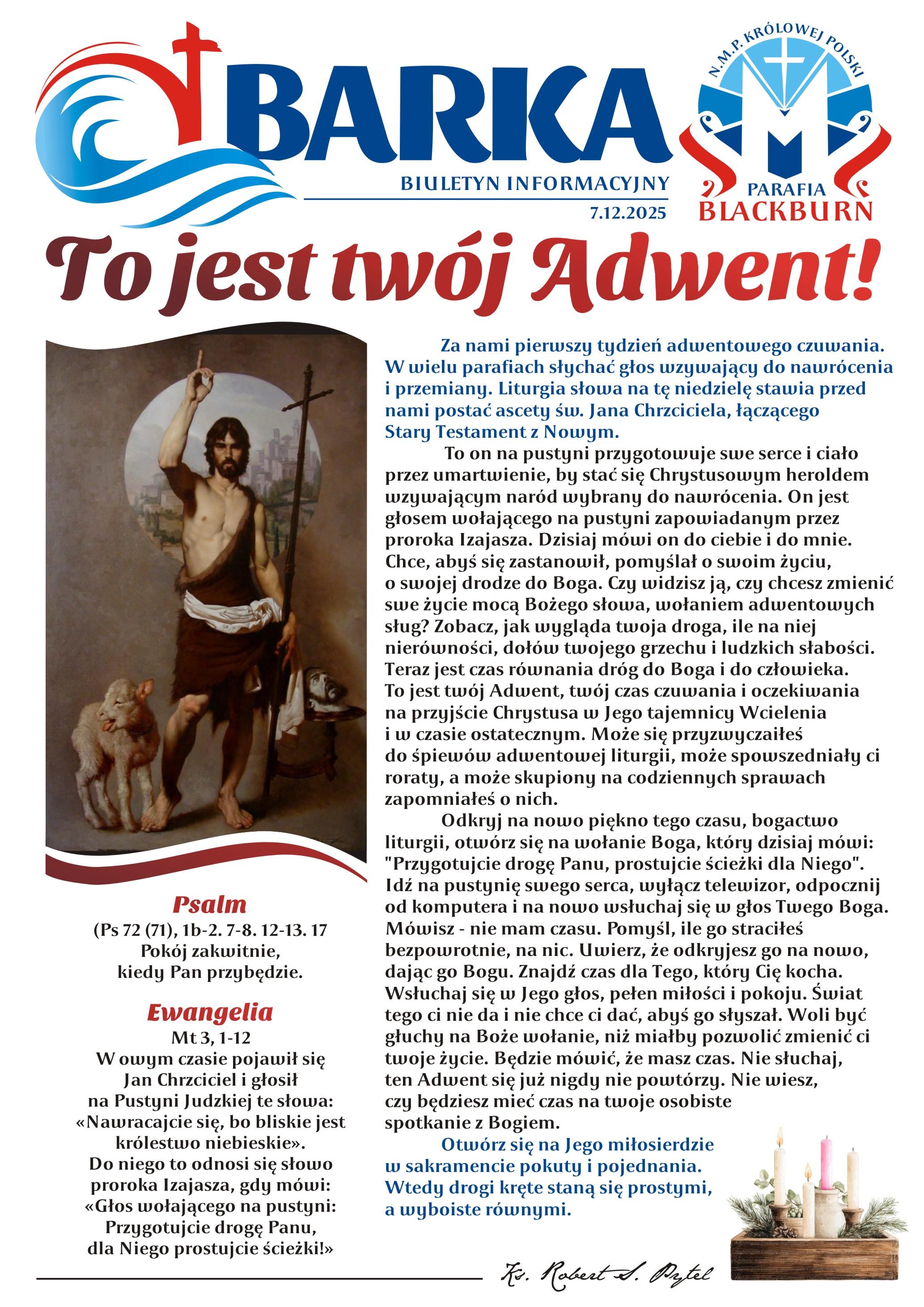 środa 06:30RORATY + Wojciech Ryszard Trzebiński z racji pogrzebu.