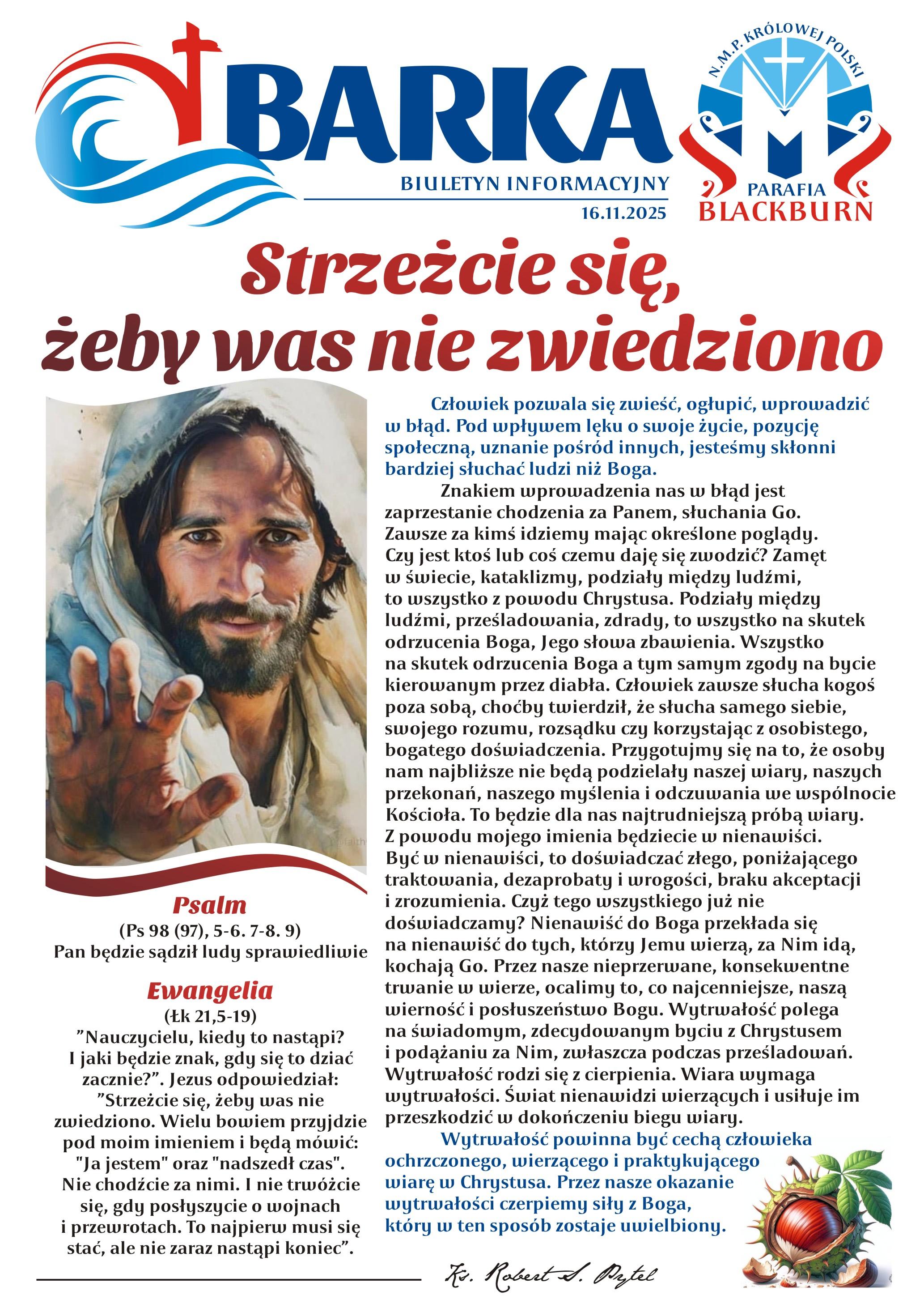 wtorek 19:00W intencji Stanisława Kaczor z okazji urodzin.