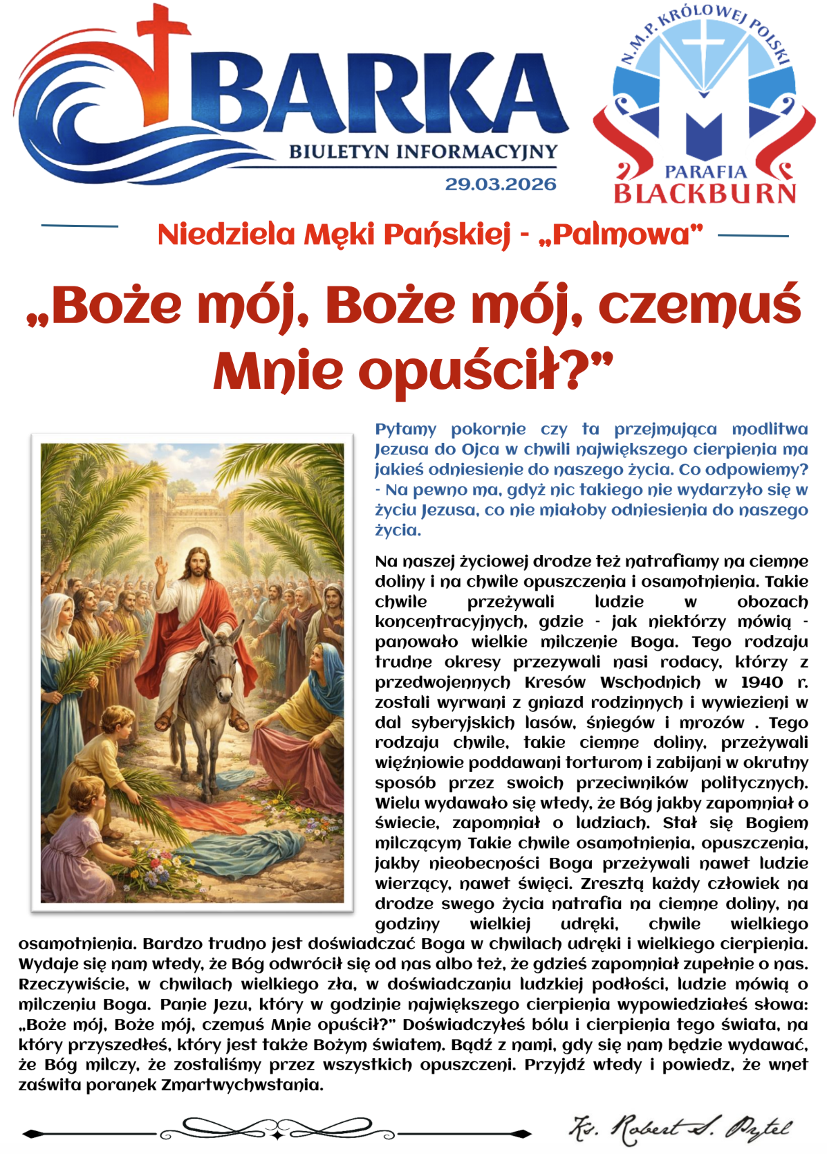 środa 08:301. W intencji kapłanów od Margaretek . 2. + Za wszystkich zmarłych proboszczów parafii.
