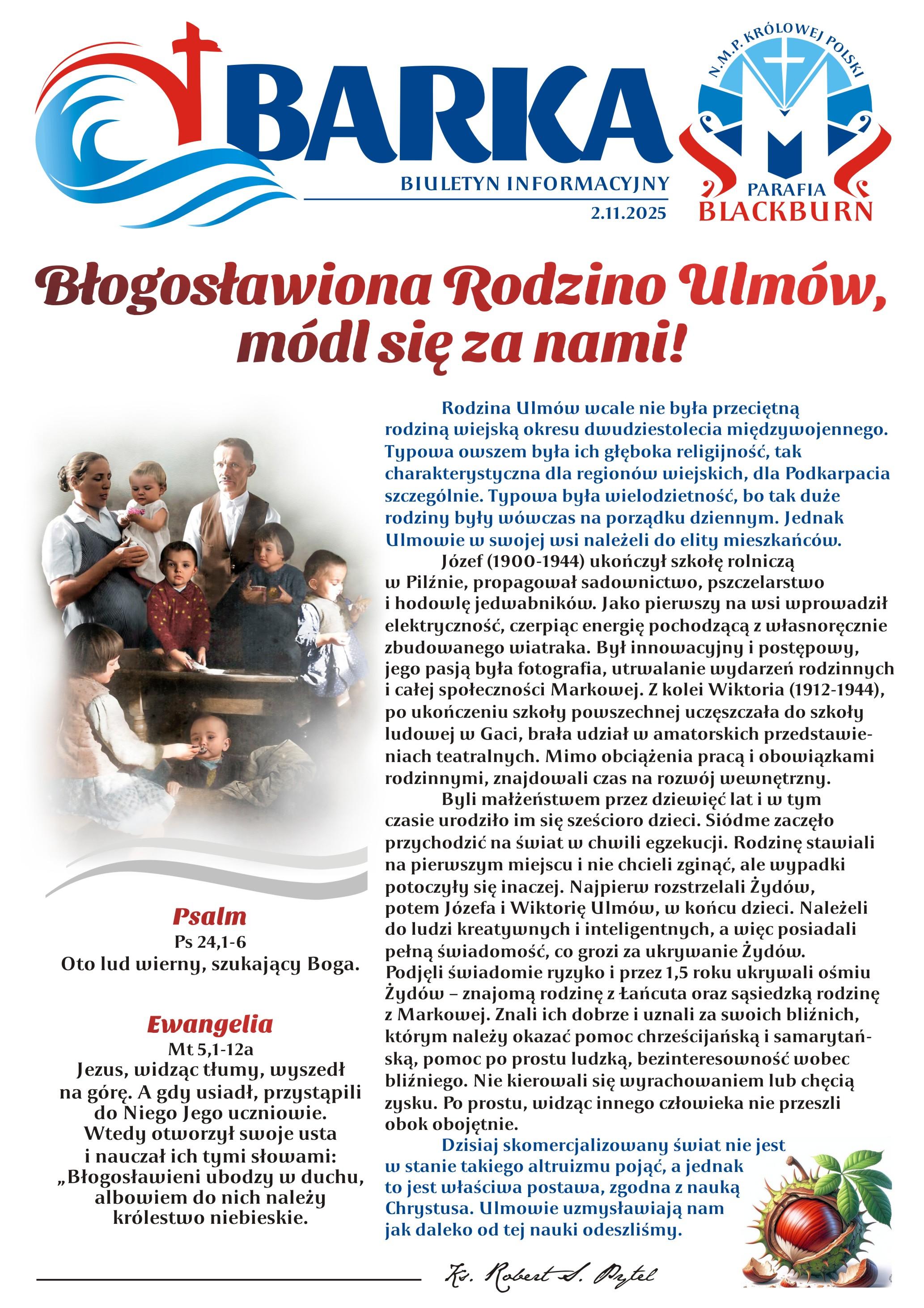 sobota 19:00Za wszystkich zmarłych z naszych rodzin i parafii